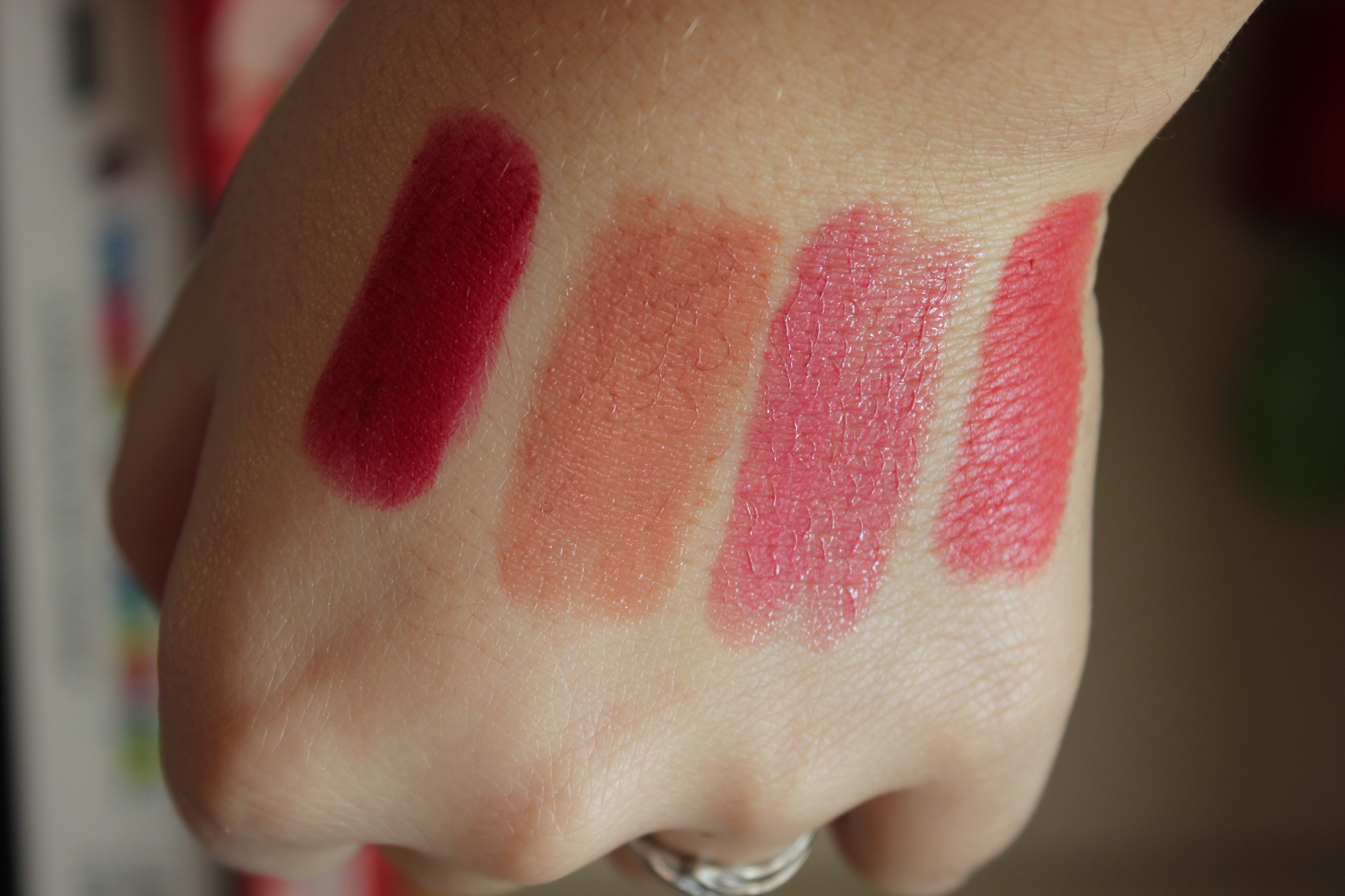 La dernière touche makeup, que j’ajoute parfois, c’est un rouge à lèvre. Voici donc mes favoris pour cette saison, de gauche à droite :