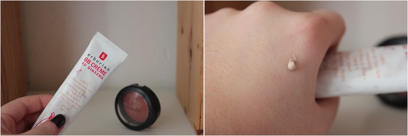En automne, le bronzage s’est déjà échappé, et on reprend notre couleur hivernale; j’ai donc ressorti ma BB Cream de chez Erborian, qui paraît un peu claire au premier abord mais le secret est qu’il faut bien la travailler et la chauffer afin qu’elle se fonde bien dans votre peau.