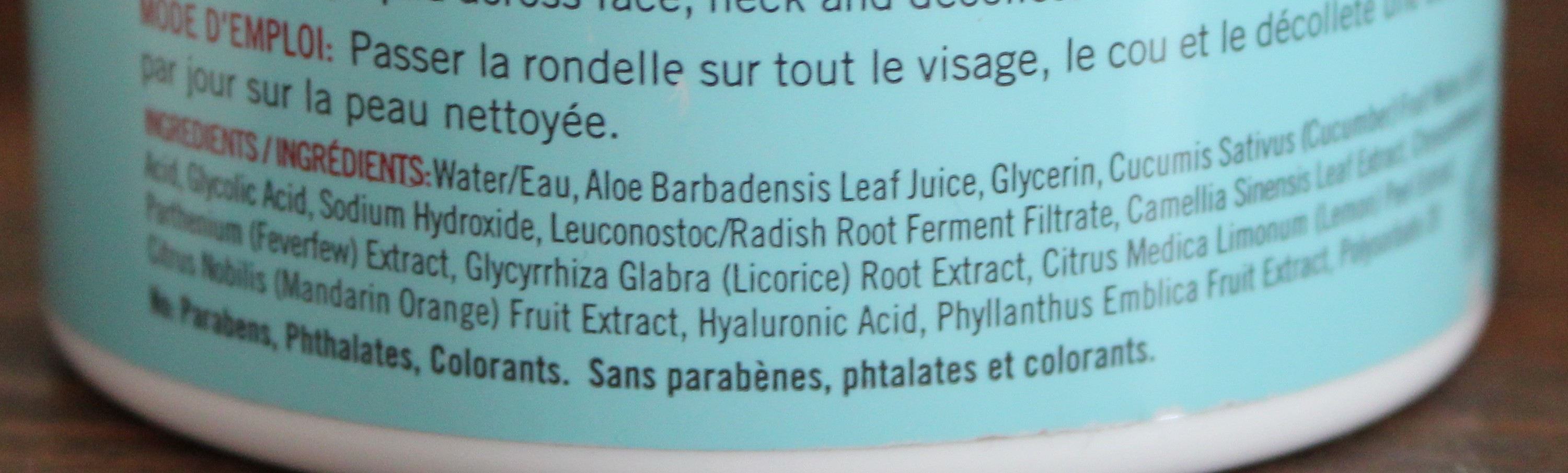 Au niveau des ingrédients, c’est une marque qui se veut très clean. On trouve de l’eau, du jus d’aloe vera et de la glycerin dans les premiers ingrédients. Attention pour les peaux intolérantes au parfum, il y en a un peu à l’intérieur.