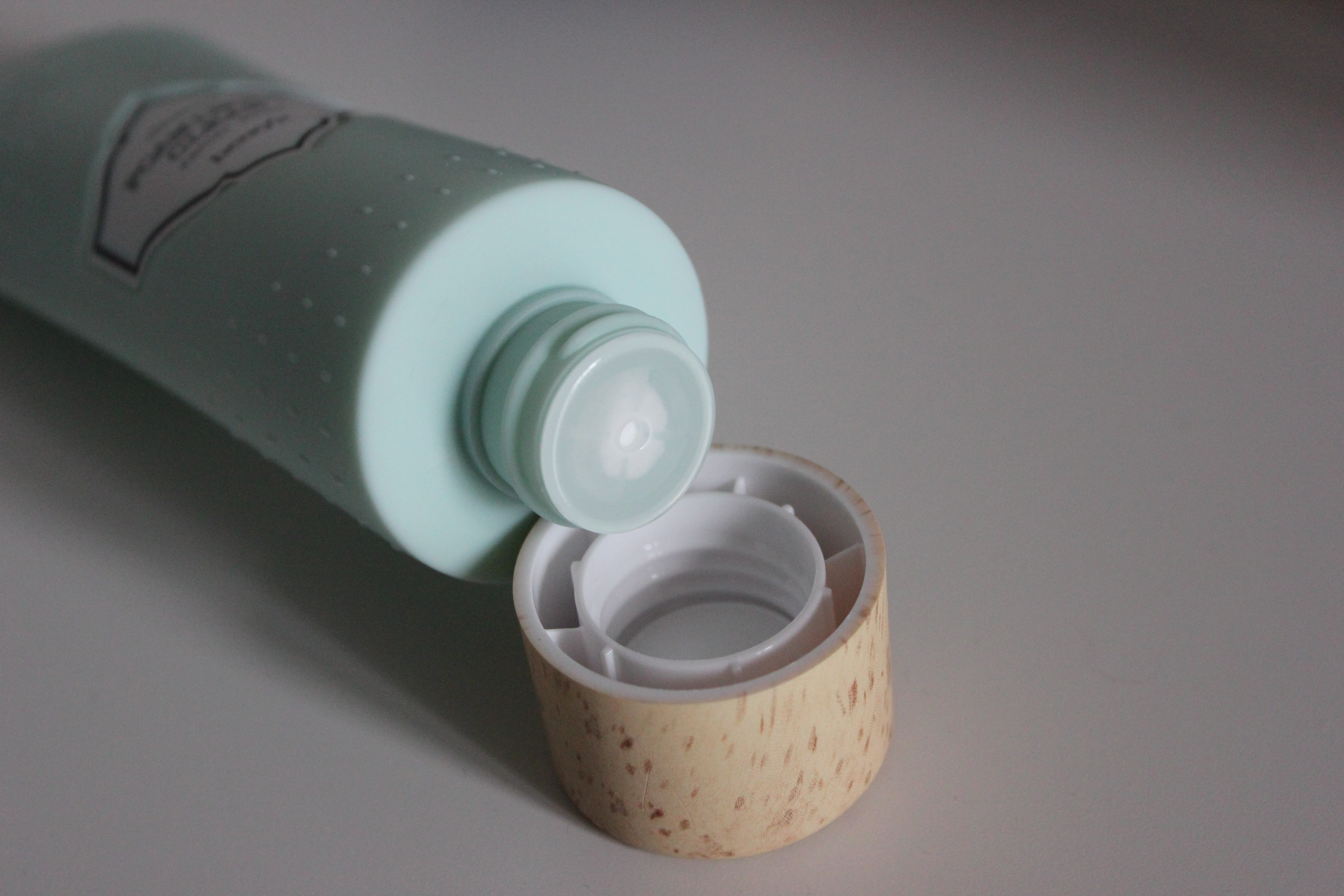 C’est un joli tube blanc et mint en plastique qui contient 150ml.